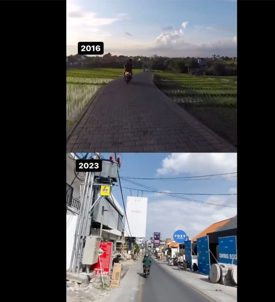 Tiba-tiba saya juga merasa pening, memikirkan bahwa daerah subur di Bali, seperti Canggu dan Ubud, sebenarnya sudah cukup produktif untuk memberikan pendapatan bagi masyarakat setempat melalui pertanian, tanpa perlu dibuka untuk alih fungsi lahan menjadi properti.