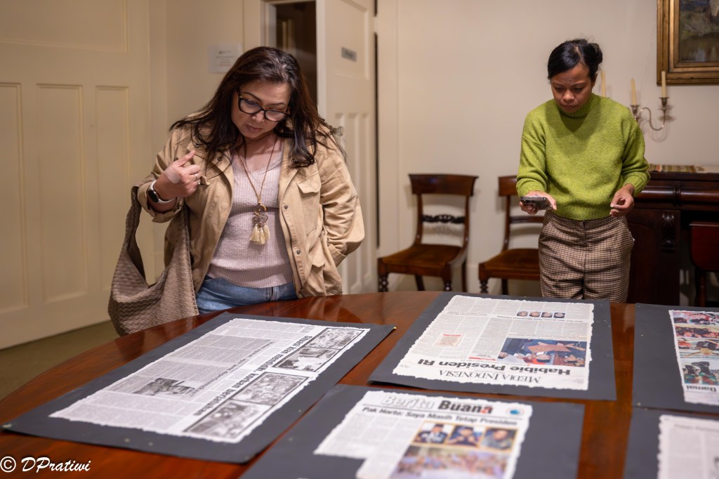 Saya menuliskan nama di buku tamu, lalu melangkah masuk ke ruangan di mana foto-foto dokumentasi, potongan koran, majalah, dan memorabilia membawa saya ke tahun-tahun penuh gejolak. Dari tiap gambar, jeritan-jeritan masa lalu seakan merembes keluar, membisikkan luka yang belum sembuh.