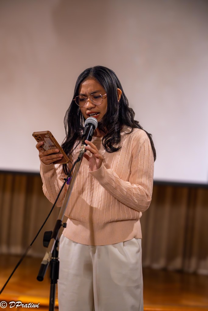 Acara pun dimulai. Setelah sambutan pembuka, penonton disuguhkan monolog, tarian ekspresif dengan iringan piano yang menggetarkan jiwa, dan puisi yang menyayat hati.