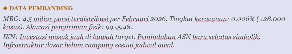 III. NERACA JUJUR: MBG vs. PROYEK PRESTISIUS YANG TIDAK MENYENTUH RAKYAT