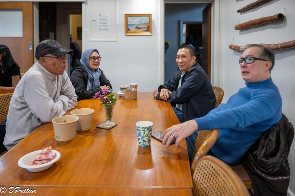 Portal Suara Indonesia temu muka dengan Dandhi Laksono (sutradara Dirty Vote) dan Victor Mambor (Jurnalis TV Jubi West Papua) pada hari Rabu 24 April jam 6: sore di rumah makan Enak by Nelayan, Melbourne CBD.Penulis tetap Hila Tokan santai berbincang dengan pengunjung Konser Bersama Rakyat, 31 Mei 2025, di Armagh House, Toorak. Foto oleh D.Pratiwi.